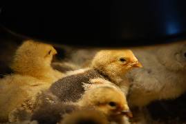 The behaviour and sounds of the chicks will indicate their comfort level. Comfortable birds will form a circle under the lamp, and make soft “cheeping” noises. Cold birds will huddle and pile, and make sharp noises. If birds are too hot, they will huddle as far from the lamps as possible. Some birds will pant if the temperature is too high. Your birds will do a better job than a thermometer of telling you if they are comfortable.