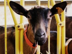 There are two varieties of goats at this farm, Alpine (brown) and Saanen (white). They are curious creatures and most will pop their heads up to have a look around when someone comes in.
