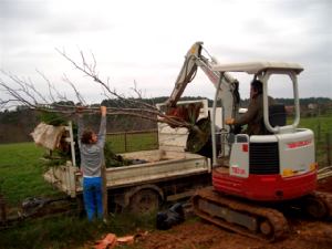 The spurt was carried on into February and was followed by electricians and interior craftsmen followed by more electricians and then kitchen fitters to check final measurements. We became positively giddy at the level of industry. Our Conducteur, who we met on site frequently, was clearly in a whip-cracking mood and it was beginning to really show results. Outside, large sized trees were ordered from the local Pépiniériste (specialist tree nursery), delivered and planted. The final landscaping of the site was discussed and planned with the Terrassier whose finesse with a 28 tonne digger was absolutely outstanding and his advice most helpful. EDF continued to be unhelpful and evasive.