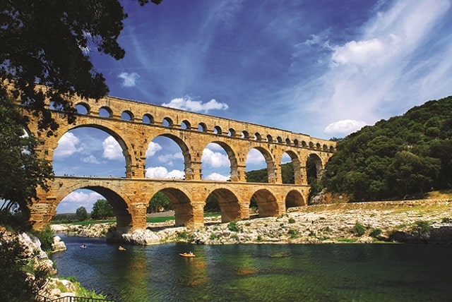 Lastly, one of the most important structures to have survived from antiquity: the Pont du Gard. The 50-metre-high aqueduct was built in the mid-1st century to transport water to Nîmes over the Gardon river below. A technical masterpiece that measures 360-metres across at its longest point, this work of art remains proof of the engineering prowess of the Roman empire.