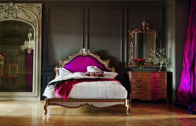 The bed is the largest item of furniture in the room and probably one of the most expensive pieces to buy, so it is best to focus on this first. There are lots to choose from including sleigh beds, bedsteads, antique or modern reproduction, caned, painted or upholstered, Rococo, Louis Philippe, Provencal etc. The list seems endless but once you’ve decided it will spur you on to find bedside tables, a chest of drawers and perhaps an armoire. A large mirror (as ornate as you fancy) placed against the wall or hung up over the bed can make a grand statement. So many beautiful things to be found so it shouldn’t be too difficult to keep the romance in mind when choosing each piece. If space and budget allows, the pièce de résistance might be a chaise longue.