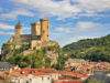 The Château de Foix has overseen the story of the Ariège for centuries, and the discovery of cave paintings beneath the castle’s foundations suggest s that this spot has been inhabited for some 13,000 years. Its location is unique: built upon a huge rock at the confluence of two major rivers, the castle overlooks a flat valley shielded by the Pyrénées, which surround it on all sides.