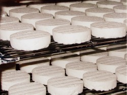 After that, the curd is shaped using moulds and left to dry. Several days later, a skin will have formed and the cheese is ready to receive its label on the way to the farm shop.