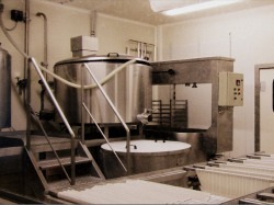From there, viewing windows allow you to follow the cheese making process from start to finish. Once the milk has been collected, the first thing to do is separate the curds and whey.